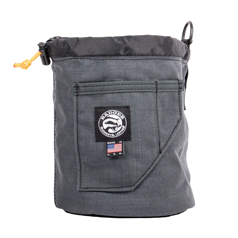Snørelukkingen sørger for at gjenstander ikke faller ut, men kan åpnes for å få plass til en hånd. Posen er laget av 1000D nylon i to lag, og bunnen av posene er laget av 1050D nylon i to lag for ekstra stivhet og slitestyrke. Badger Pro Pouches er tilgjengelig i 4 størrelser: Small (13 cm diameter x 15 høy), Medium (15 cm diameter x18 cm høy), Tall (15 cm diameter x 22 cm høy), Large (18 cm diameter x 20 cm høy) Produsert i USA med materialer fra USA