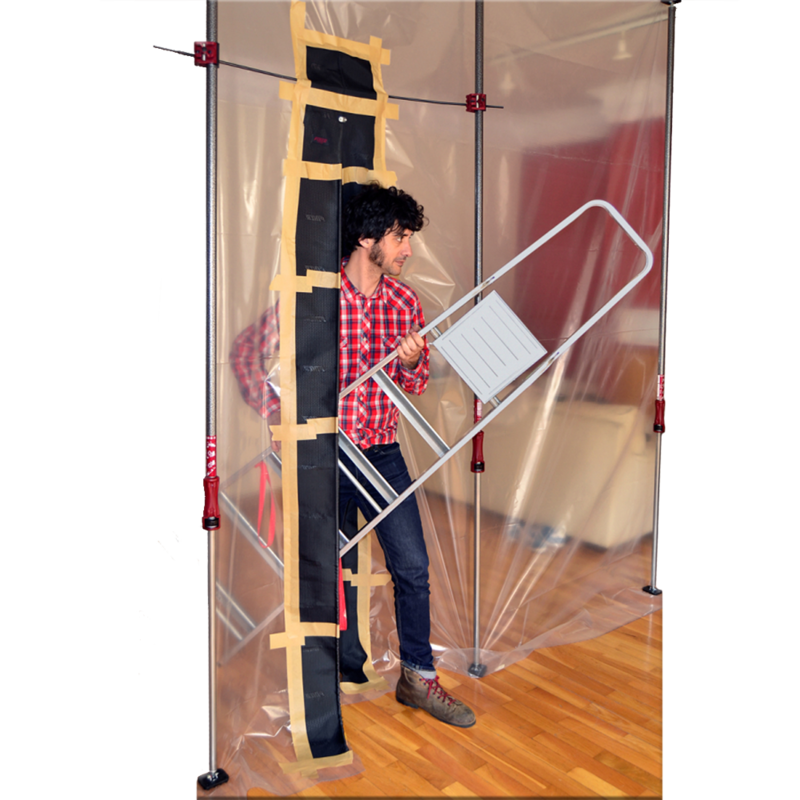 – Medfølger 2 stk Multiklemmer med øyebolt og 4 stk metalstenger for å henge opp døren på Teleskopstøtter. Døren kan også teipes rett på plasten.
